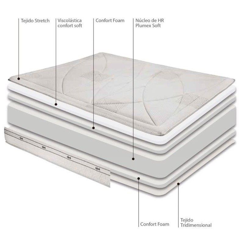 El colchón con HR y con acolchado de viscoelástica de carbono Anuk de Astral, tejido Stretch, ofrece una distribución uniforme de la presión del cuerpo sobre el colchón facilitada por su material viscoelástico. Además, gracias a su núcleo Hr Plumex Soft, presenta un elevado factor de soporte (relación entre entre el confort superficial y el de la parte central de la espuma), ideal para los que buscan una superficie firme de descanso. ALTURA DEL COLCHÓN DESDE EL CENTRO: 24±1cm
